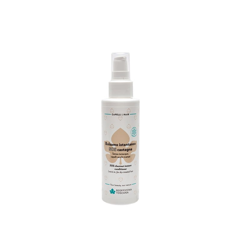 Un balsamo senza risciacquo, ad azione istantanea, per capelli secchi o trattati e colorati. Contiene bioliquefatto di castagna bio toscana, un esclusivo attivo dalle testate proprietà idratanti, protettive da trattamenti stressanti e riparatrici per capelli danneggiati. Il bioloquefatto di castagna agisce in sinergia con la cheratina vegetale dalle proprietà rinforzanti ed anticrespo. Arricchito da estratti bio di semi di lino ed ortica. Districa i capelli senza appesantirli, lasciandoli morbidi, idratati, disciplinati e dolcemente profumati.