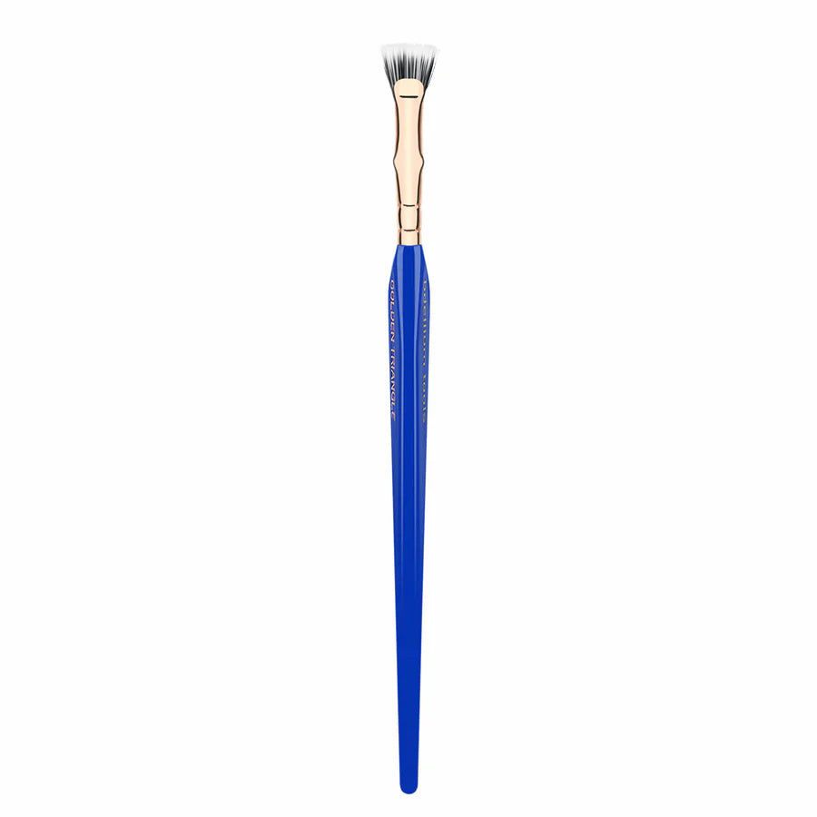 - Manico ergonomico in legno laccato blu con il nome del pennello (730 Duet Fibre Bent Lash Fan) inciso, che garantisce controllo superiore e stabilità su qualsiasi superficie.