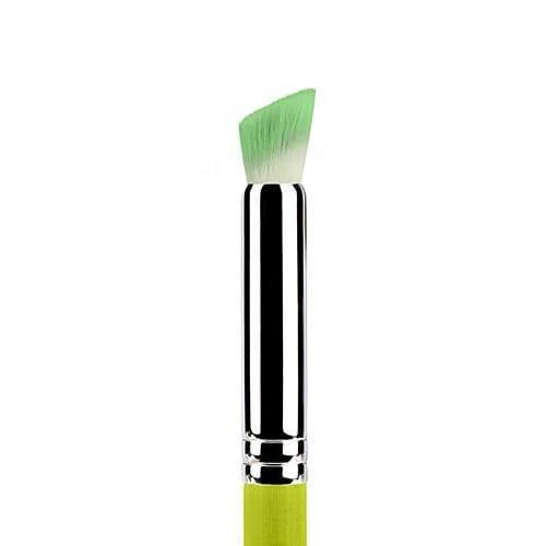 Pennello angolato con taglio netto, ideale per il contouring. Perfetto per creare accenti di colore precisi e illuminare gli angoli interno ed esterno dell’occhio.