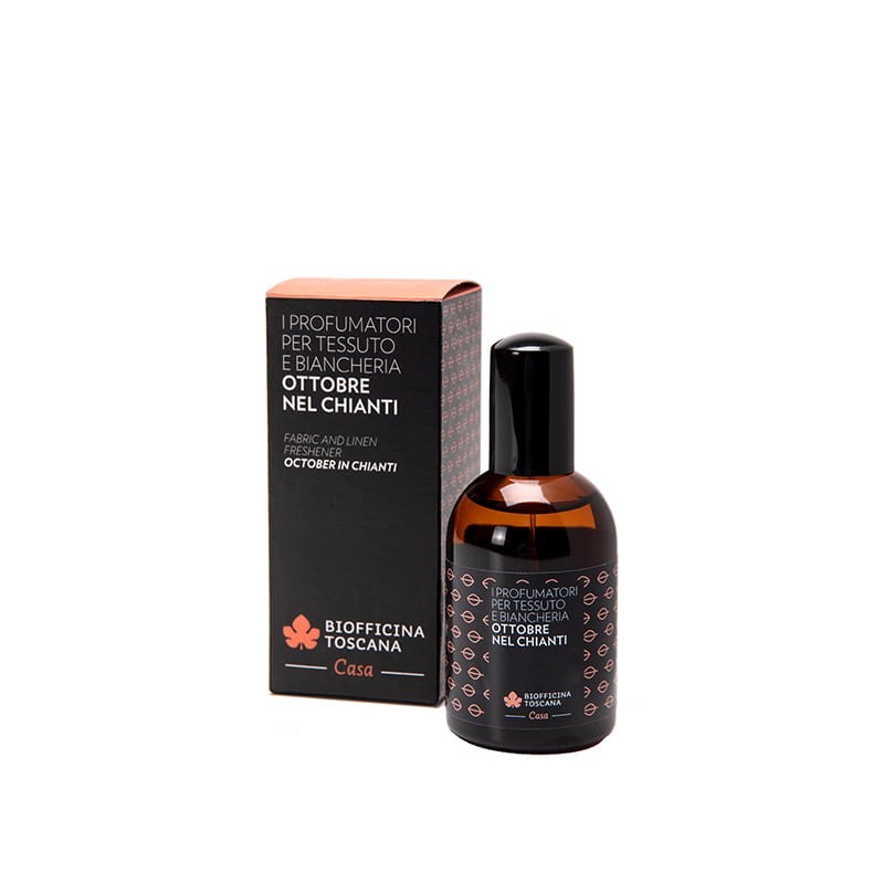 Una fragranza intensa ed avvolgente che richiama l’atmosfera autunnale del Chianti, quando la campagna si veste di toni dorati, lungo le dolci colline, fusi con la luce ambrata del cielo ed i sentori muschiati sprigionati dalla terra. Un profumatore delicato per tessuti e biancheria con alcol biologico, formulato con un’attenzione al suo impatto ambientale. Ideale per profumare piacevolmente vestiti e biancheria, armadi e cassetti. Non lascia aloni e non macchia i tessuti.