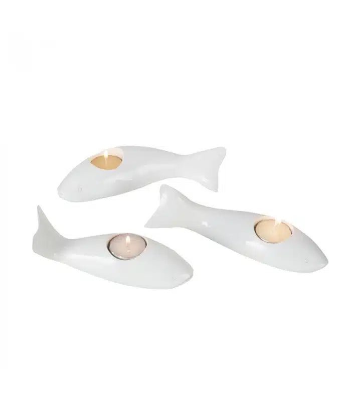 Portacandela in Ceramica Bianca a Forma di Pesce