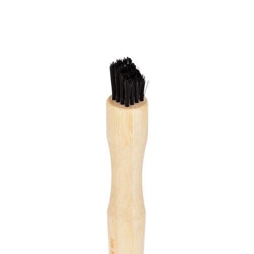 Manico in bambù sostenibile, setole sintetiche morbide e vegane, e ghiera in alluminio