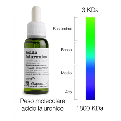 L'Acido Ialuronico a Multiplo Peso Molecolare de La Saponaria è un siero viso anti-age altamente performante, formulato con acido ialuronico di origine naturale in quattro pesi molecolari: bassissimo, basso, medio e alto. Questa combinazione consente una penetrazione profonda nella pelle, offrendo un effetto rimpolpante, idratante e liftante, contrastando efficacemente le rughe e donando un aspetto più giovane e tonico al viso e al décolleté.