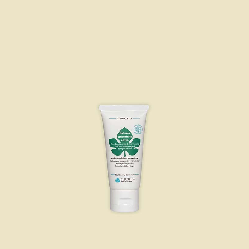 Il Balsamo Concentrato Attivo di Biofficina Toscana è un trattamento intensivo ideale per capelli danneggiati e fragili. La sua formula combina l'olio extravergine di oliva "Toscano IGP" biologico con proteine vegetali del fagiolo baccello, offrendo nutrimento profondo e lucentezza senza appesantire.