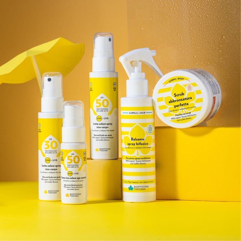 Un balsamo senza risciacquo ad azione districante-ammorbidente. Con estratti di elicriso e verbasco bio toscani dalle proprietà addolcenti, Urea e molecole condizionanti altamente biodegradabili, è ideale per il mare o la piscina perché contrasta la formazione di nodi e la perdita di acqua dovuta all’esposizione al sale, al cloro e ai raggi UV. Lascia i capelli morbidi, reidratati e disciplinati.