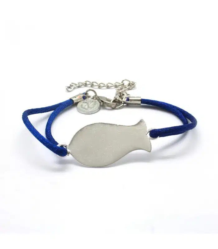 Questo bracciale in corda blu si distingue per il suo design marinaro, arricchito da un pesce stilizzato e dal sigillo di un’ancora posizionato sulla chiusura. Un accessorio semplice ma originale, che unisce la freschezza del cotone alla resistenza del metallo, perfetto per uno stile sportivo e creativo.