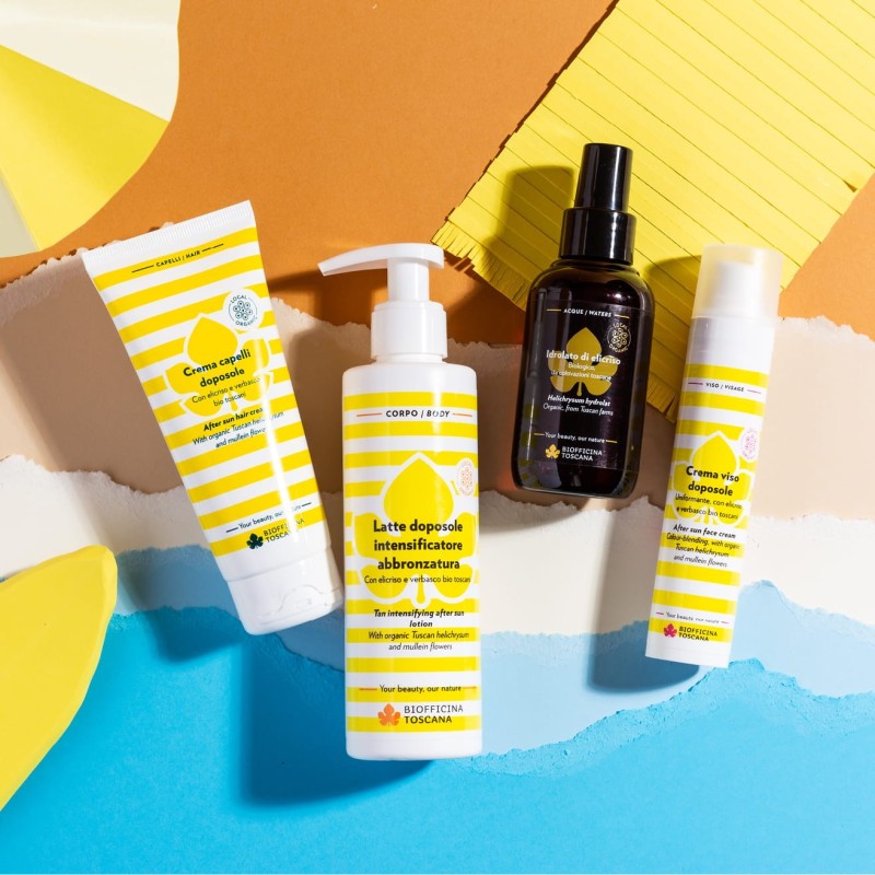 Una crema capelli idratante-disciplinante, ideale come trattamento nutriente-condizionante doposole. Con un estratto oleoso di alga di mare ad azione condizionante- illuminante, acqua di riso fermentata per un’intensa attività idratante, uniti ad estratti bio toscani di elicriso e verbasco della macchia mediterranea con proprietà addolcenti. Ideale da utilizzare dopo o durante l’esposizione al sole ed alla salsedine del mare, reidrata i capelli lasciandoli morbidi, disciplinati e lucenti.