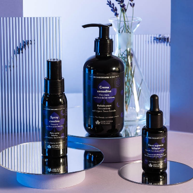 Per un effetto sinergico abbinala agli altri prodotti della Cronocosmesi Biofficina Toscana: siero supremo bifasico, spray cuscino, mist energizzante viso, contorno occhi lift up.