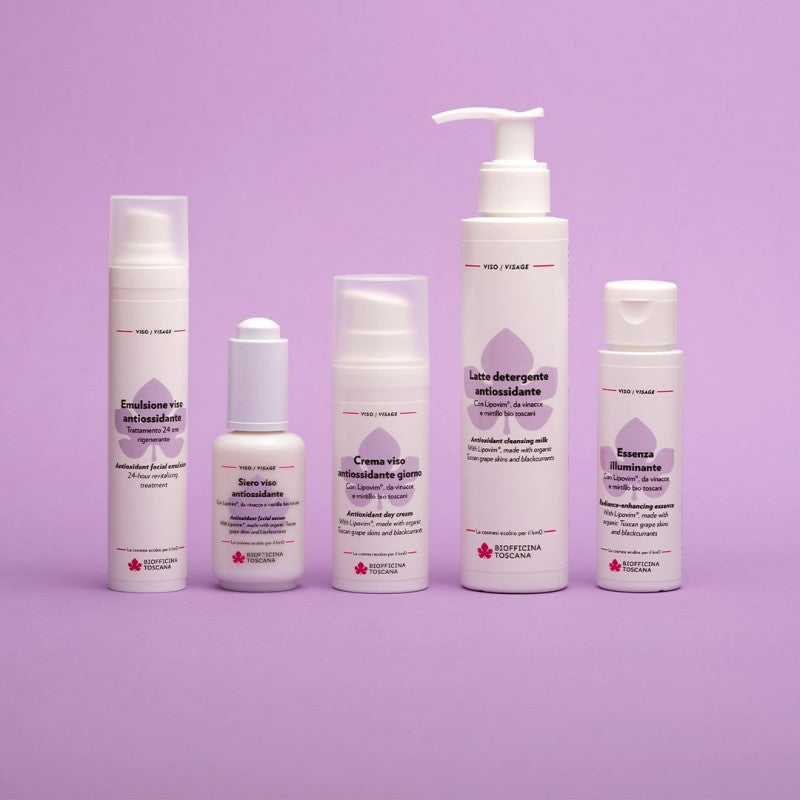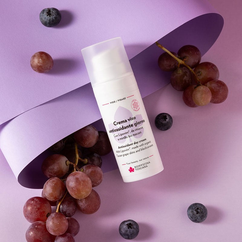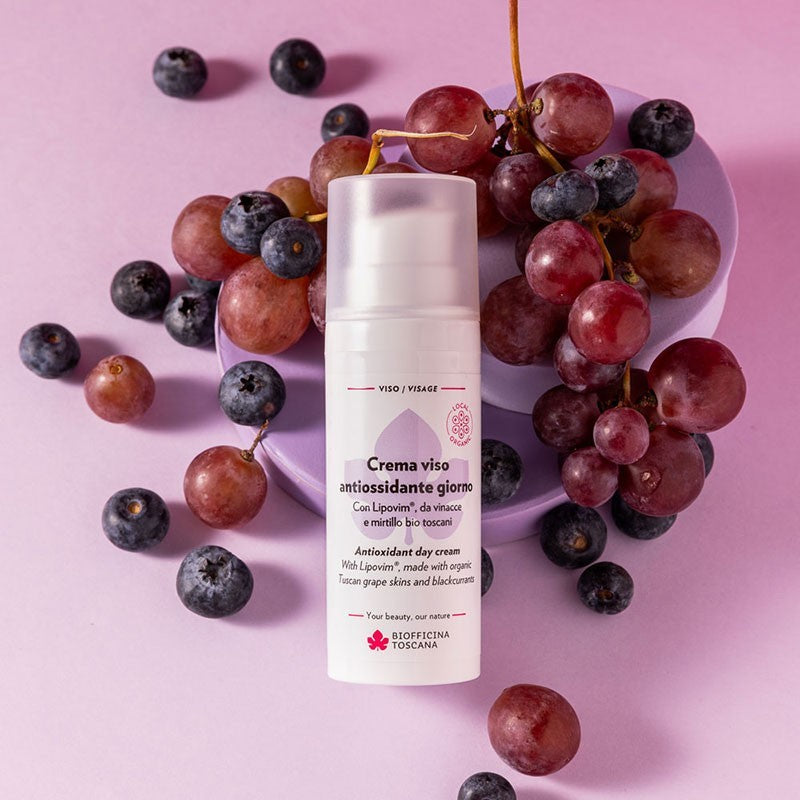 Contiene l’esclusivo principio Lipovim®, un liposoma di vinacce e mirtillo bio toscani che veicola gli attivi antiossidanti dei frutti sulla pelle, preservandone e migliorandone le proprietà.