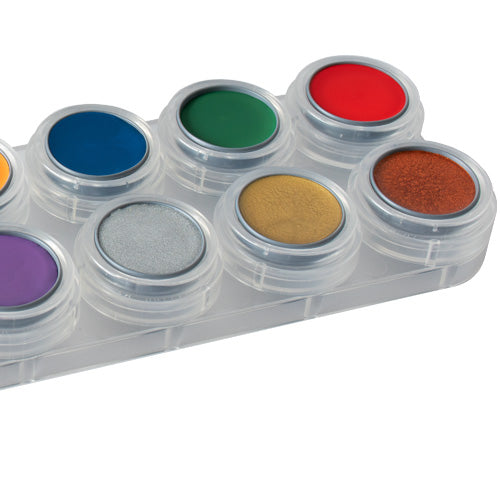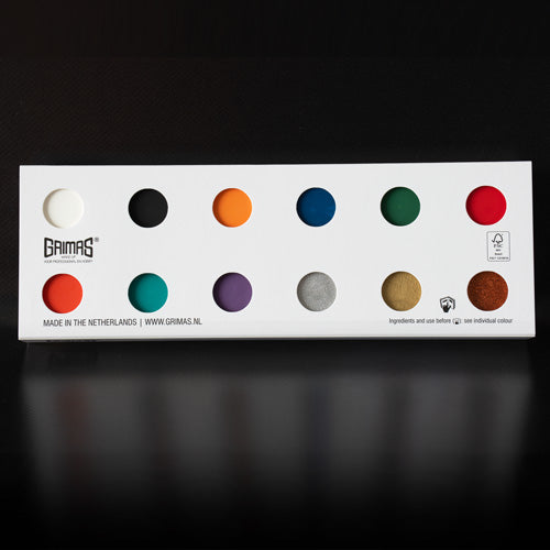 Grimas Crème Make-up Pure Palette F 12 x 2,5 ml è una palette professionale composta da 12 tonalità A1 di fondotinta in crema coprente e sfumabile. Ideale per make-up artist, performer e truccatori teatrali, questa versione "Pure" è realizzata con una base di oli e cere, senza profumi o conservanti chimici.