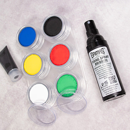 Grimas Fixing Spray crea una sottile pellicola invisibile sulla pelle che fissa il make-up e lo protegge da sbavature, acqua e sudore. Ideale per fissare facepaint, bodypaint e make-up a base d’acqua, garantisce un risultato duraturo, uniforme e a lunga tenuta.