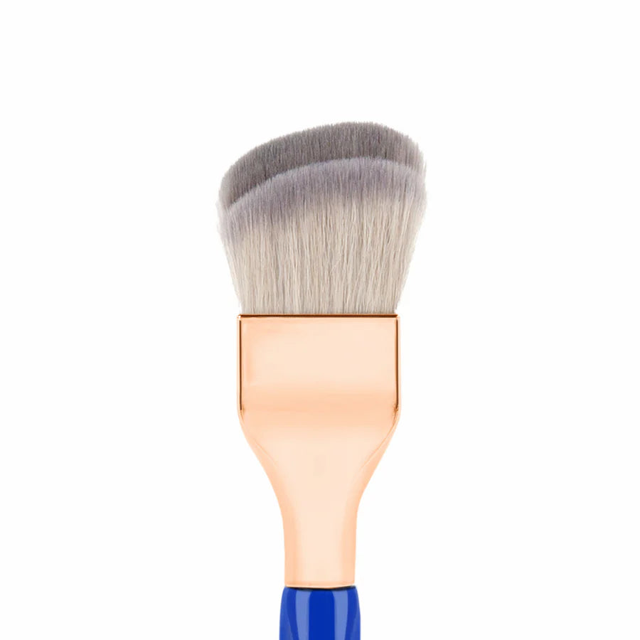 Il Double Dome Blender è composto da una cupola grande e una piccola. La cupola piccola ha una superficie opaca con setole ondulate microscopiche, mentre la cupola grande presenta una superficie lucida con setole dritte. La cupola grande raccoglie meno prodotto per un'applicazione più leggera, mentre quella piccola ne raccoglie di più per un'applicazione più coprente. Applica il fondotinta con il lato lungo e piatto del pennello, poi utilizza il lato corto con la doppia cupola per sfumare e ammorbidire. Per una copertura maggiore, usa sempre il lato corto con la tecnica dello stippling.