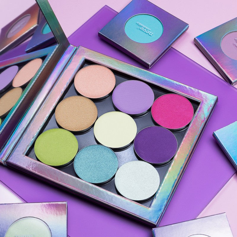 Holographic9 Creative è la palette professionale vuota pensata per chi desidera comporre il proprio set di colori in totale libertà. Realizzata in elegante cartoncino olografico, può contenere fino a 9 cialde universali da 3,6 cm di diametro. Il fondo magnetico permette di inserire, estrarre e riposizionare le cialde con facilità, offrendo massima flessibilità e personalizzazione.