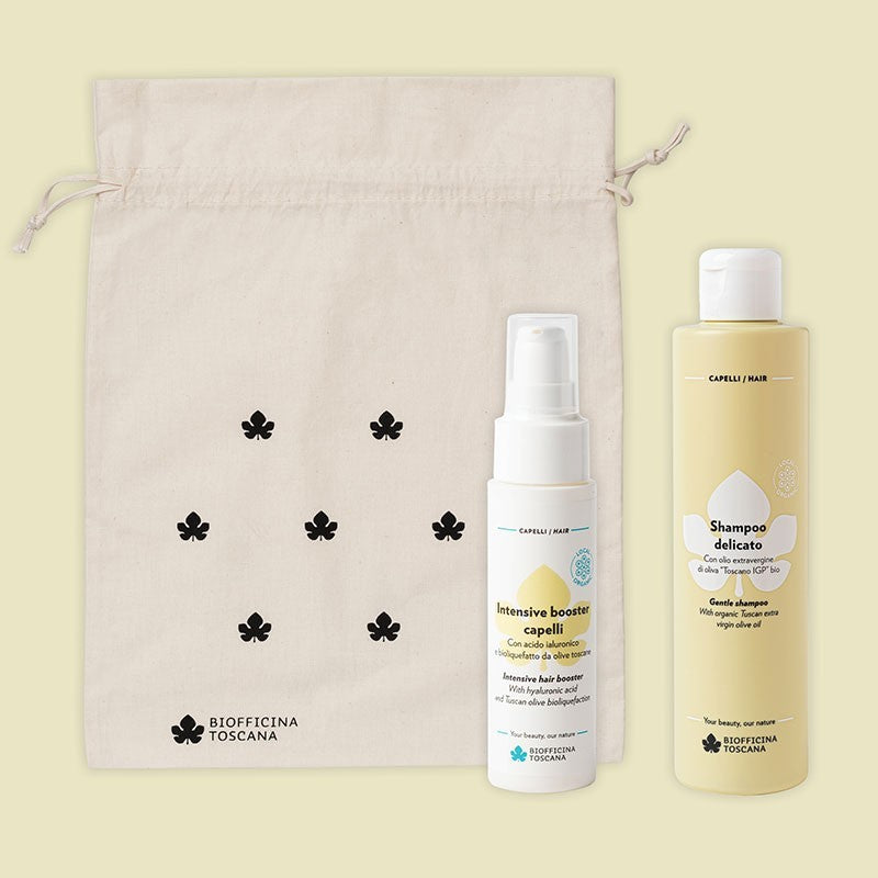 Il kit ideale per prendersi cura dei capelli con una routine completa che dona forza, vitalità e luminosità. Racchiude due best seller della linea Biofficina Toscana in un pratico sacchetto logato, perfetto anche come idea regalo.