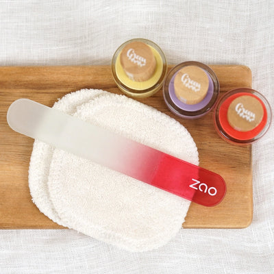 Una lima resistente, igienica e delicata sulla lamina ungueale, pensata per modellare le unghie senza danneggiarle. La Lima unghie in vetro Zao permette una limatura precisa e uniforme, ideale anche per unghie sensibili o che tendono a sfaldarsi. Le sue dimensioni compatte la rendono perfetta da tenere in borsa o da utilizzare nella routine manicure quotidiana.