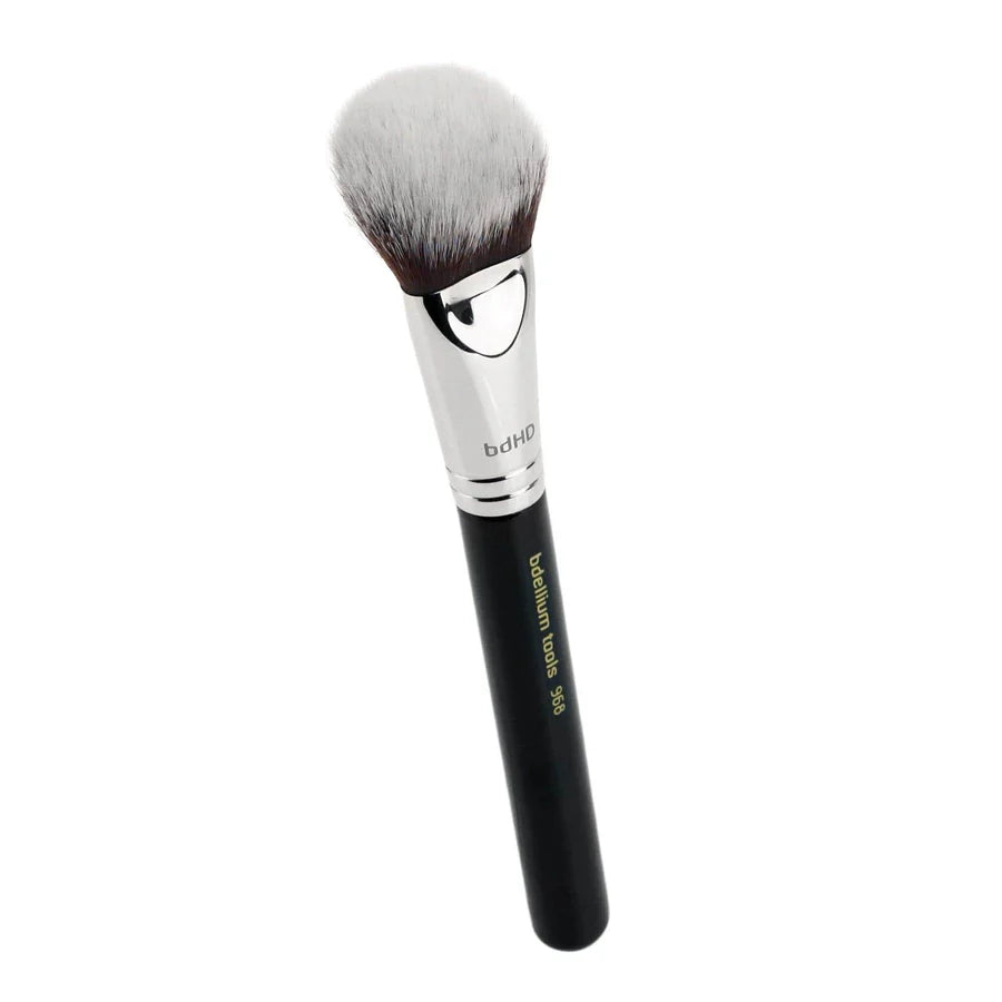 La forma brevettata del Maestro 968 BDHD Phase II Small Foundation/Contour Brush consente di applicare e sfumare illuminante e contouring con un lato del pennello, utilizzando poi l'altro lato per ammorbidire il look con polveri libere o compatte tramite movimenti circolari.