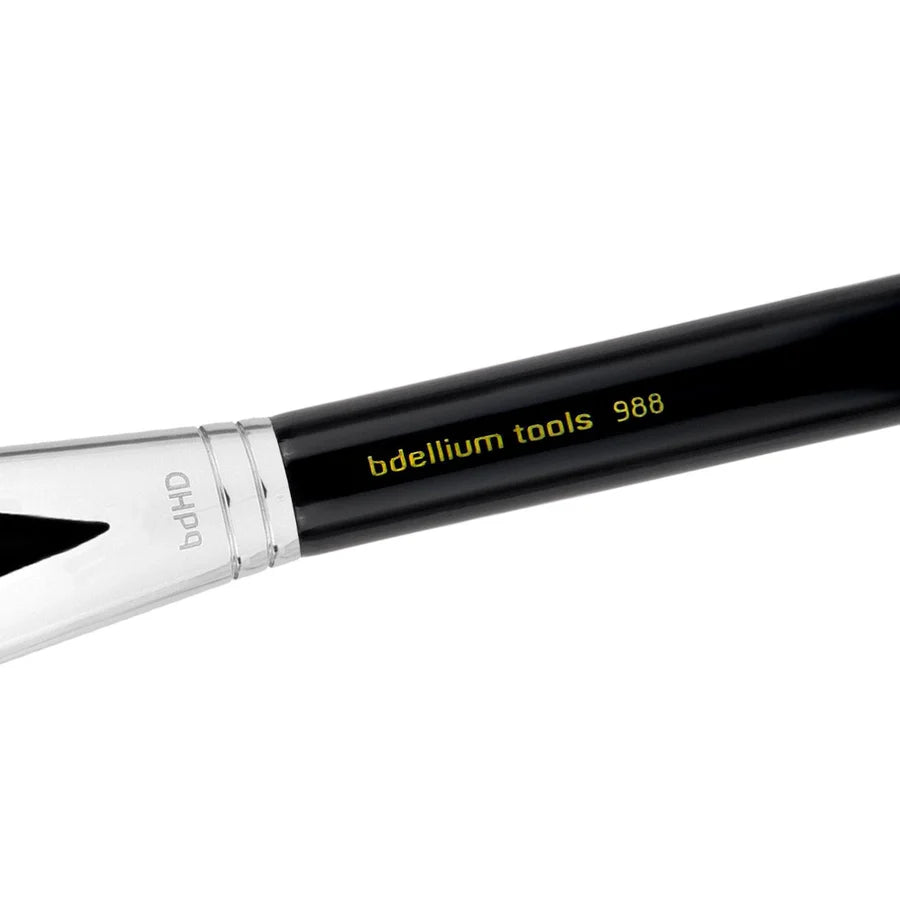 La forma brevettata del Maestro 988 BDHD Phase I Large Foundation/Powder Brush consente di applicare e sfumare il fondotinta con un lato del pennello e di ammorbidire il look utilizzando l’altro lato con polveri libere o compatte tramite movimenti circolari.