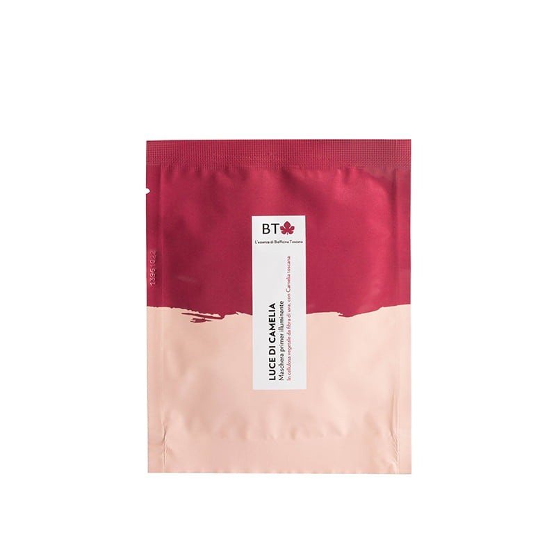 Una maschera primer in cellulosa vegetale da fibre di uva, ricca di sostanze antiossidanti e illuminanti per una pelle uniformata, idratata e compatta. La Camelia toscana con proprietà antiossidanti-restitutive, agisce in sinergia con collagene vegetale, principi idratanti-lenitivi ed un pigmento soft focus che minimizza i segni del tempo per preparare al meglio la pelle al trucco.