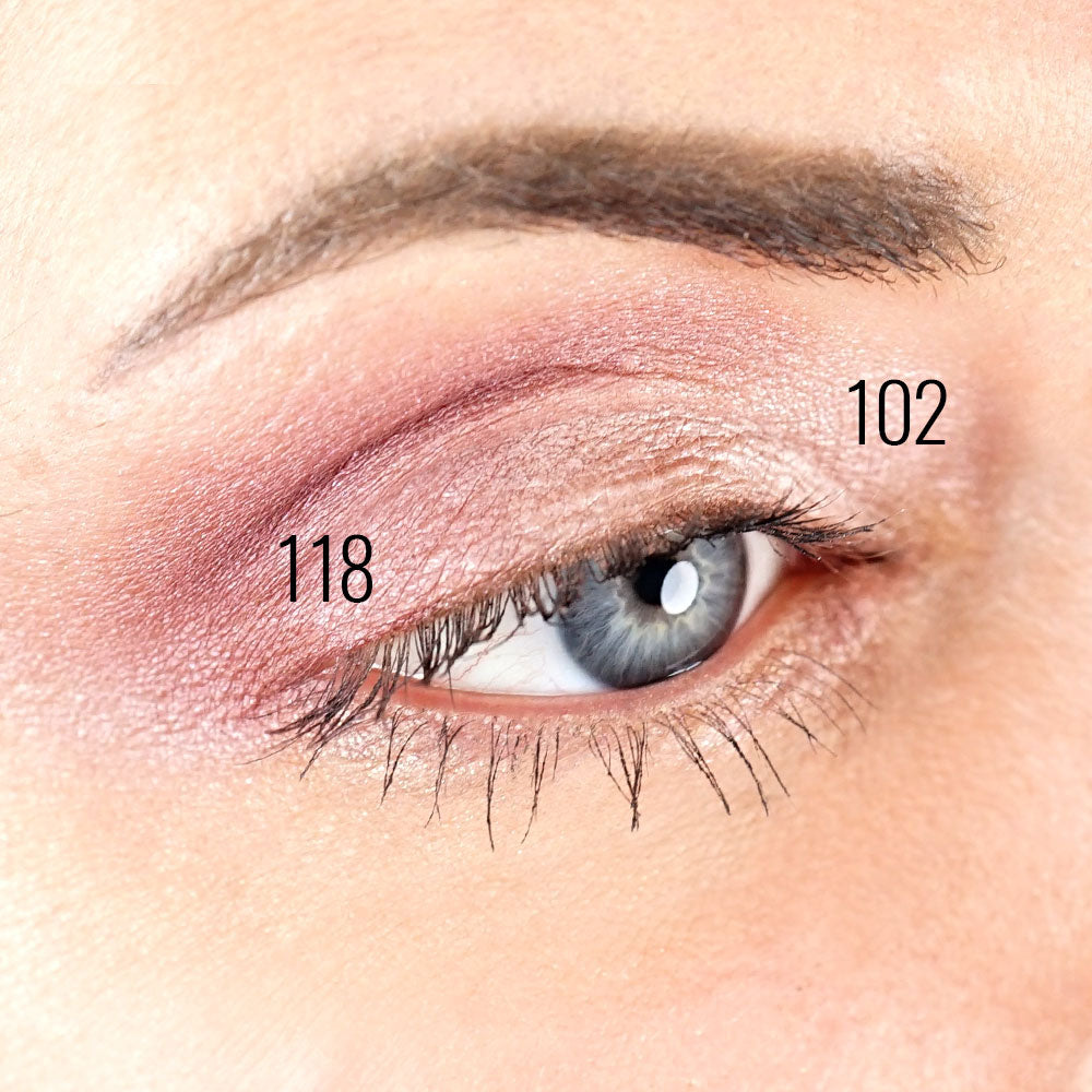 EYESHADOWS PEARLY FROM 102 TO 136 (F12): MICA, SQUALANE, ORYZA SATIVA (RICE) POWDER*, ZEA MAYS (CORN) STARCH*, ZINC STEARATE, OLIVE OIL DECYL ESTERS**, PARFUM (FRAGRANCE), TOCOPHEROL, SQUALENE, LINUM USITATISSIMUM (LINSEED) SEED OIL*, GLYCINE SOJA (SOYBEAN) OIL*, ALPHA-GLUCAN OLIGOSACCHARIDE, AQUA (WATER), OLEA EUROPAEA (OLIVE) LEAF EXTRACT, OLEA EUROPAEA (OLIVE) FRUIT EXTRACT, ALCOHOL, BAMBUSA ARUNDINACEA STEM POWDER, BISABOLOL, ZINGIBER OFFICINALE (GINGER) ROOT EXTRACT. MAY CONTAIN +/-: CI 77891, CI 77491, CI 77492, CI 77499, CI 77510, CI 77007, CI 77288, CI 77742. *ingredients from Organic Farming. **processed from organic ingredients.