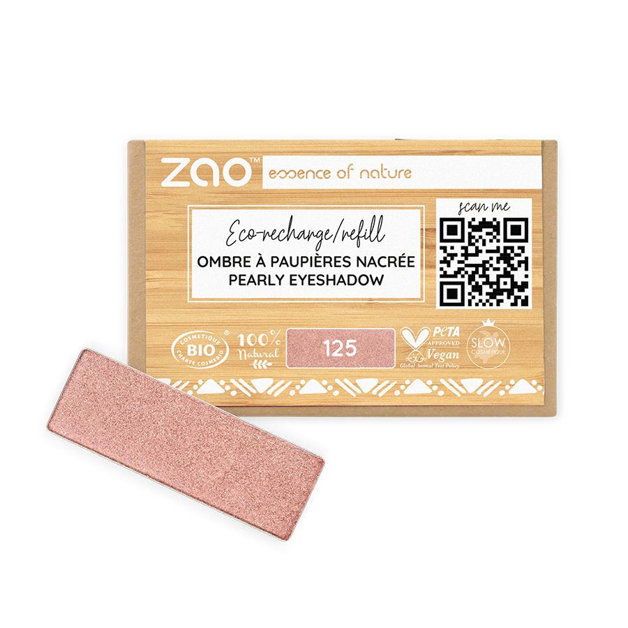 L’Ombretto perlato rettangolare Zao è pensato per chi desidera personalizzare il proprio make-up occhi in modo consapevole e sostenibile. Disponibile esclusivamente in formato ricarica, permette di comporre il duo ideale nella Bamboo Box Duo o di ricaricare le palette da 10 ombretti “Clin d'œil” e “Ultra Shiny”. La texture setosa e luminosa assicura una resa intensa e modulabile, con un finish perlato elegante che valorizza lo sguardo sia nei look quotidiani che in quelli più sofisticati.