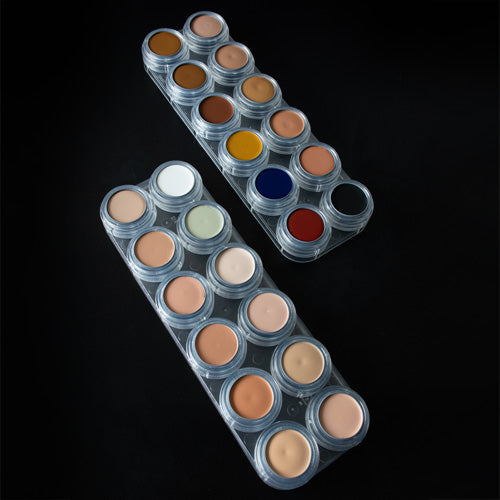 Opacizzare con Grimas Fixing Powder, Make-up Powder o Colour Powder.
