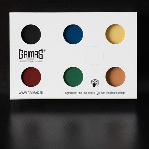 Il Set Crème Make-up Pure di Grimas include 6 tonalità selezionate da 2,5 ml ciascuna, in una formula ricca a base di oli e cere, ideale per un’applicazione uniforme e facilmente sfumabile: