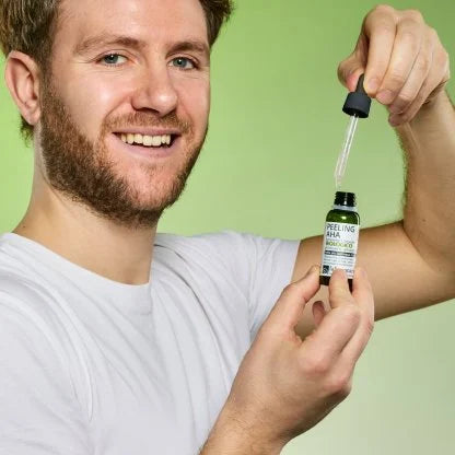 Il nostro peeling AHA esfolia la pelle andando a scindere i legami tra le cellule morte, ma non solo! Grazie al suo contenuto di alfa-idrossiacidi, fenoli naturali e polisaccaridi: