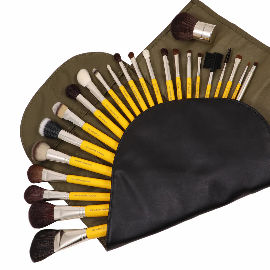 Il set include una pratica custodia arrotolabile con 20 tasche di varie dimensioni per organizzare i pennelli e 4 tasche laterali ideali per piccoli accessori.