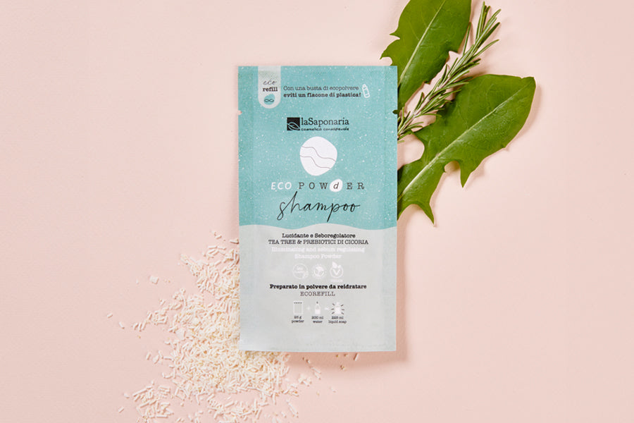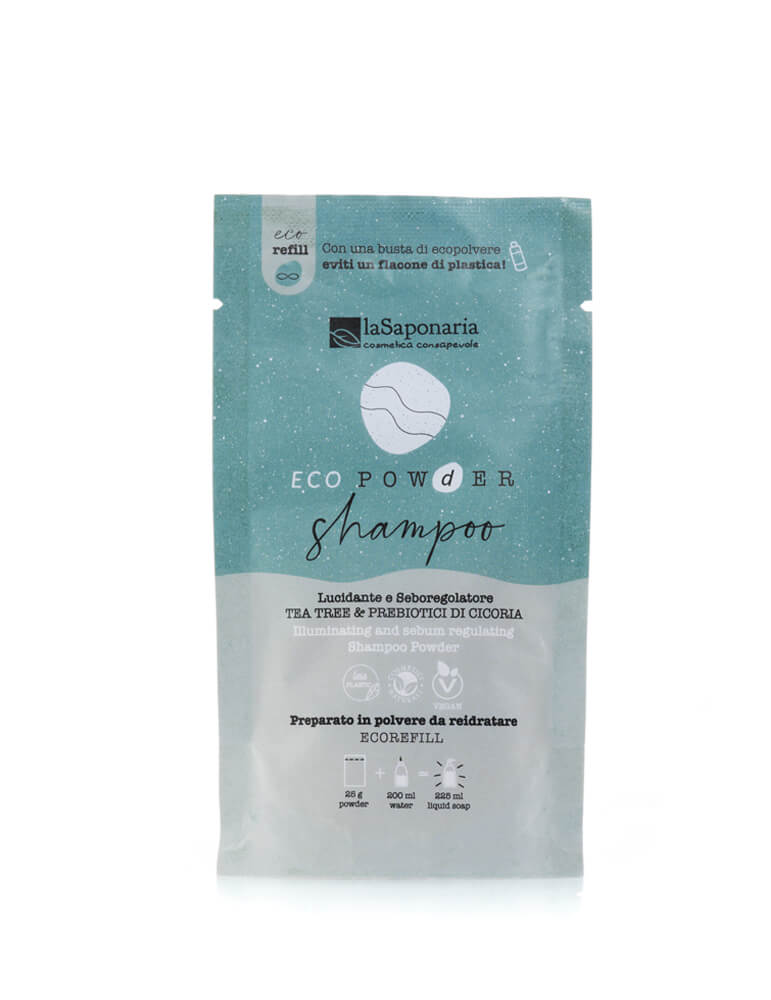 Shampoo in polvere lucidante e seboregolatore - Tea tree e Prebiotici di cicoria