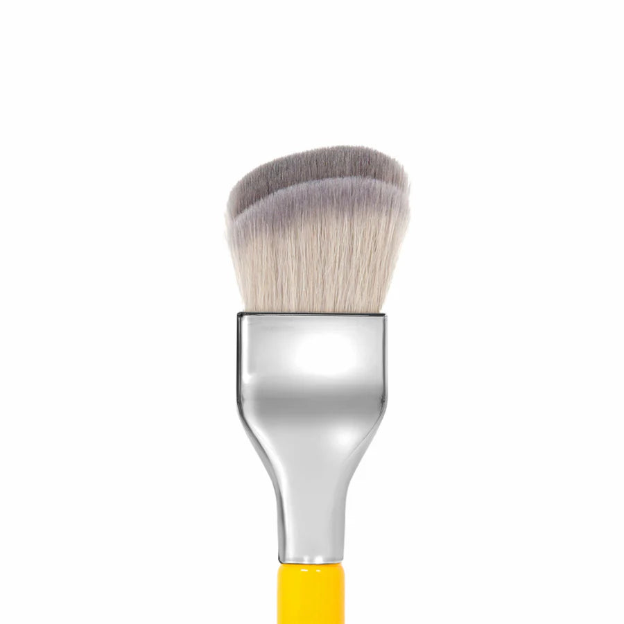Applica il fondotinta con il lato lungo e piatto del pennello, quindi utilizza il lato corto per sfumare e ammorbidire il risultato. Il design della ghiera leggermente angolata offre un'applicazione comoda e precisa.