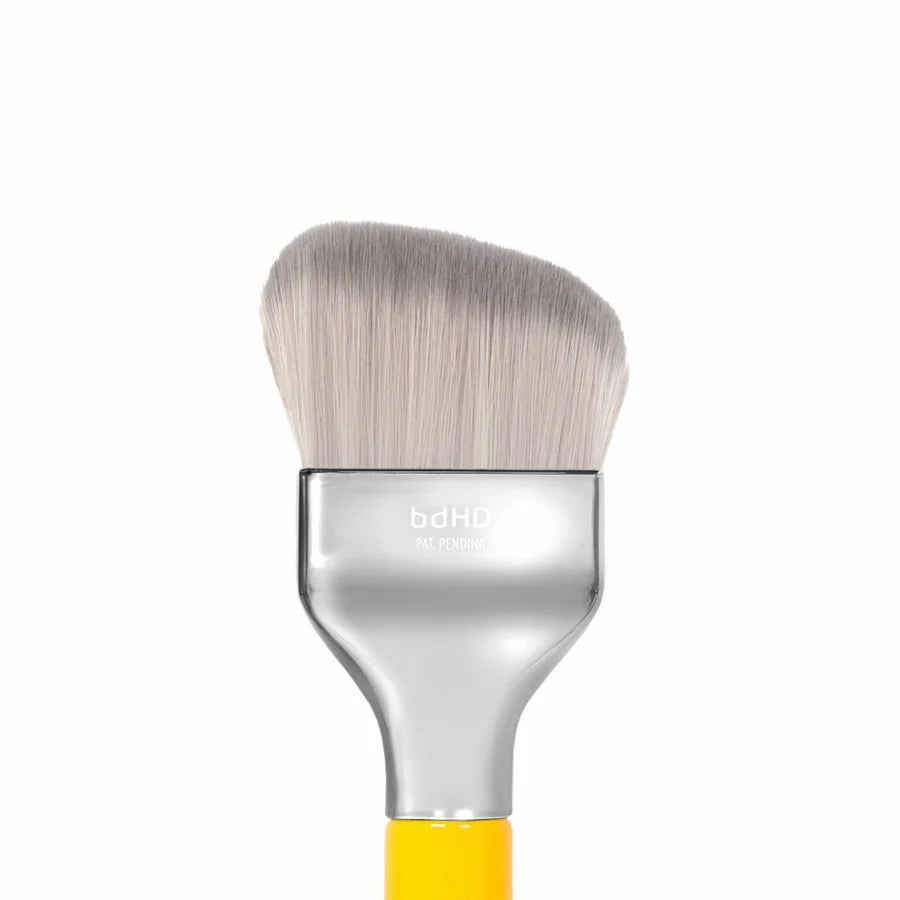Applica il fondotinta con il lato lungo e piatto del pennello, poi utilizza il lato più corto per sfumare e ammorbidire. Il design angolato consente un’applicazione precisa anche nelle zone curve, piegate o profonde del viso e del corpo.
